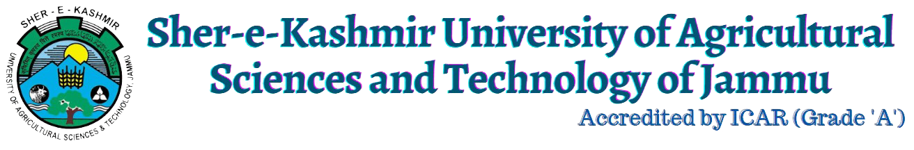 her-e-Kashmir University of Agricultural Sciences and Technology of Jammu (SKUAST-Jammu) came into existence on 20th September, 1999 following the amendment in Sher-e-Kashmir University of Agricultural Sciences and Technology Act, 1982, through the State Legislature. The establishment of SKUAST of Jammu has in its background aspirations, commitment and missionary zeal to cater the needs of Jammu Division for the region specific advances through education, research and extension in the field of agriculture. The university is mandated to address the basic, strategic and applied research related to enhanced production in agriculture and allied sectors (livestock health improvement and quality based products). SKUAST-Jammu is striving to achieve high standards of excellence in education, research and extension for the betterment of farming community of the region.The university comprises distinct faculties, including the Faculty of Agriculture, Faculty of Veterinary Sciences & Animal Husbandry, Faculty of Horticulture and Forestry,Faculty of Dairy Technology, Faculty of Agricultural Engineering and the School of Biotechnology. SKUAST-J is a multi-campus university with it's headquarter located at Chatha, Jammu. Chatha campus possess 578.00 acres area and R. S. Pura campus has 84.13 acres land holding. The total land holding, including Research Stations/Sub-Stations and KVKs, of the University is 1223 acres . There are Eight Research Stations/Sub-Stations and nine KVKs in the University which are located in different agro-climatic zones of Jammu region for catering the location-specific needs of the farming community. University pursues researchof high standard through projects funded by various central and state agencies.